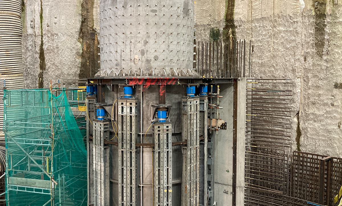 At the King Edward Memorial Park Foreshore site, a 60m-long vertical vortex channel was being installed within a deep tunnel shaft, requiring a bespoke temporary support solution during construction.