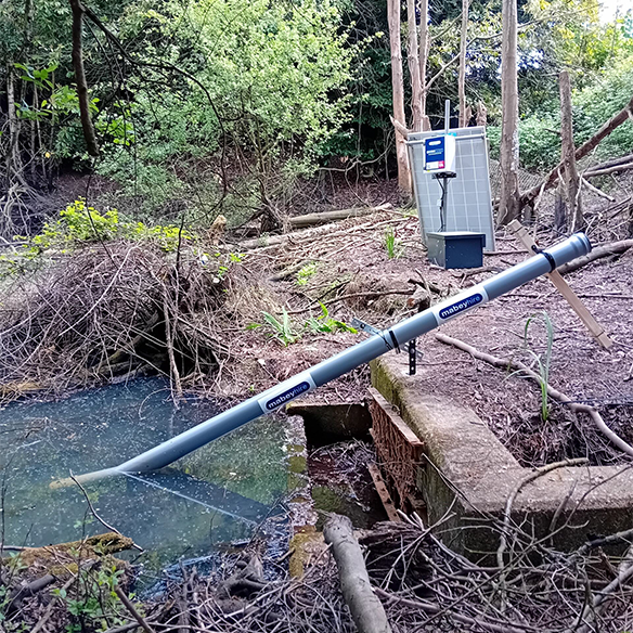 While the client’s primary focus was on the risk of concrete dust escaping the network during drilling operations, the real time data provided by our three multi-parameter water quality sensors are also measuring PH, salinity, resistivity, the level of dissolved oxygen, Oxidation Reduction Potential (ORP), temperature and more. While the conventional approach to measuring water levels within water courses involves installing a relatively bulky radar detector secured to a bridge or other structure, the devices installed monitor levels by measuring the change in water pressure from within an open-ended plastic pipe positioned below the surface.