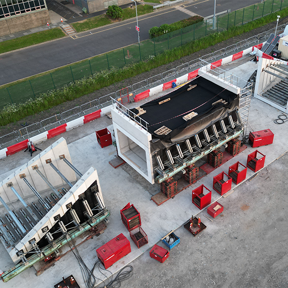 “Mabey Hire developed us a temporary works scheme that enabled us to lift the pre-cast units in three sections, using its Mass 25 and Mass 50 propping solutions to prop the sides of the structures, allowing us to safely and securely lift each one on and off the SPMT. “Mabey Hire had completed similar schemes on other areas of the Northumberland Line Project, so we knew they had the right knowledge and experience to complete this specific job.”