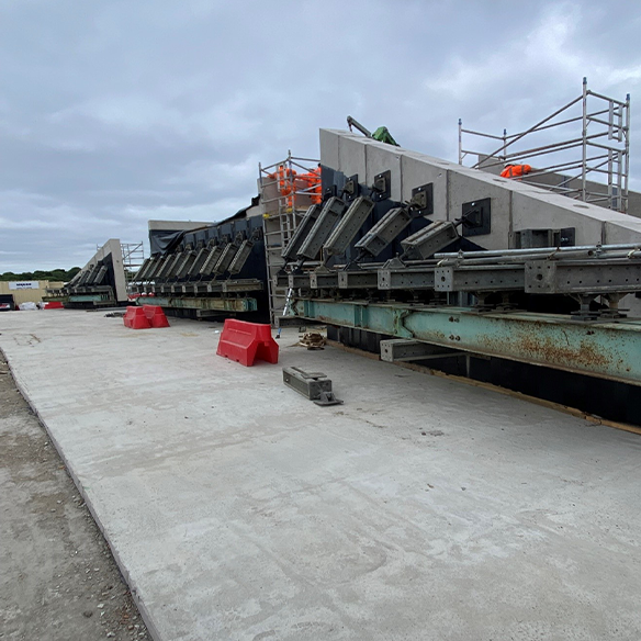 Temporary works were required to support the pre-cast units during lifting and placement onto the SPMT. These supports ensured the structures remained stable and undamaged throughout the lifting stages.