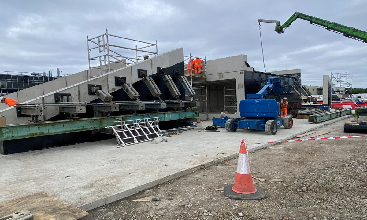 The underpass was formed using pre-cast concrete units, transported to site by Self-Propelled Modular Transporter (SPMT) and assembled on arrival. This approach reduced on-track construction time and improved safety.