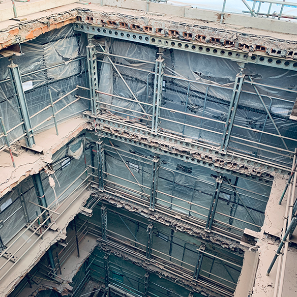 During the complex reconfiguration of a landmark Manchester property into a contemporary residential development, we were called upon to supply the most effective temporary works solution possible.