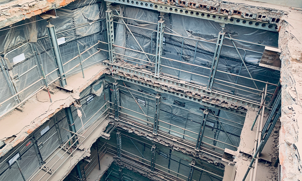 The project involved reconstructing the building’s core and extending upwards, with steel columns spanning from a new basement slab to the fourth floor. The scale and vertical span made the rebuild particularly challenging.